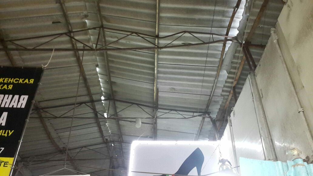 На нулевом проходе после снега доски, которые держат шифер, над головами торговцев и покупателей трещат по швам. Железные перекрытия частично треснули, некоторые сильно прогнулись.