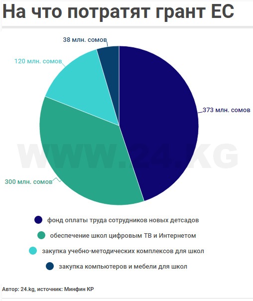 В конце декабря 2016 года Минфин распространил сообщение о том, что Европейский союз выделил Кыргызстану 36 миллионов евро в виде гранта. Из этой суммы 300 миллионов сомов направят на обеспечение школ цифровым телевещанием и Интернетом.