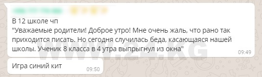 Отметим, информация появилась в одной из родительских групп. По их данным, ученик совершил суицид в 4 часа утра.