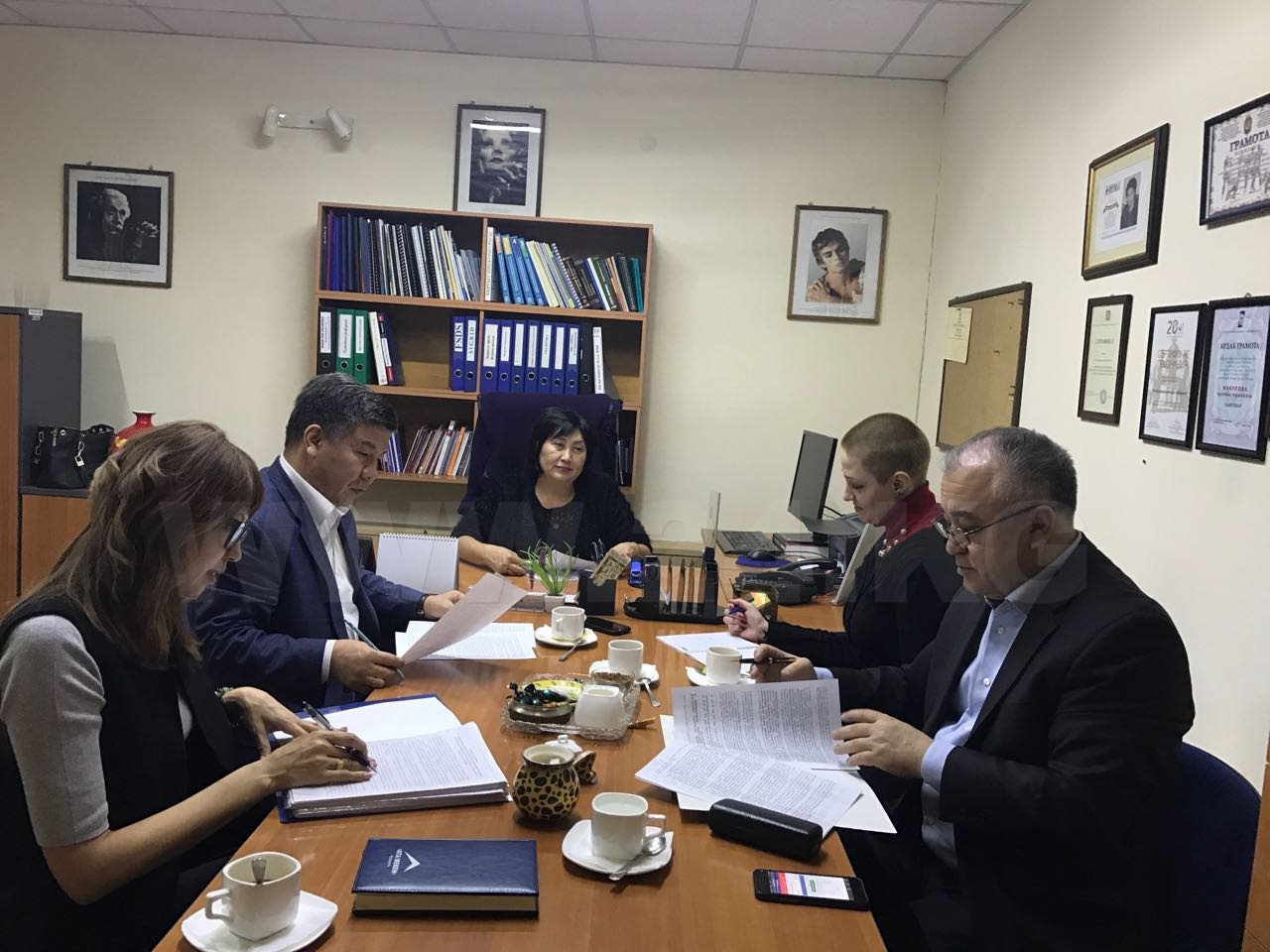 Ровно в 14.30 мы стояли на пороге офиса «Адилет». Нас проводили в кабинет к Чолпон Идиновне. «Ого, какая делегация! Омурбек Чиркешович, мы же работать собрались», — улыбается она.