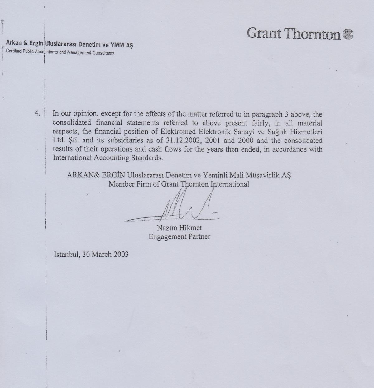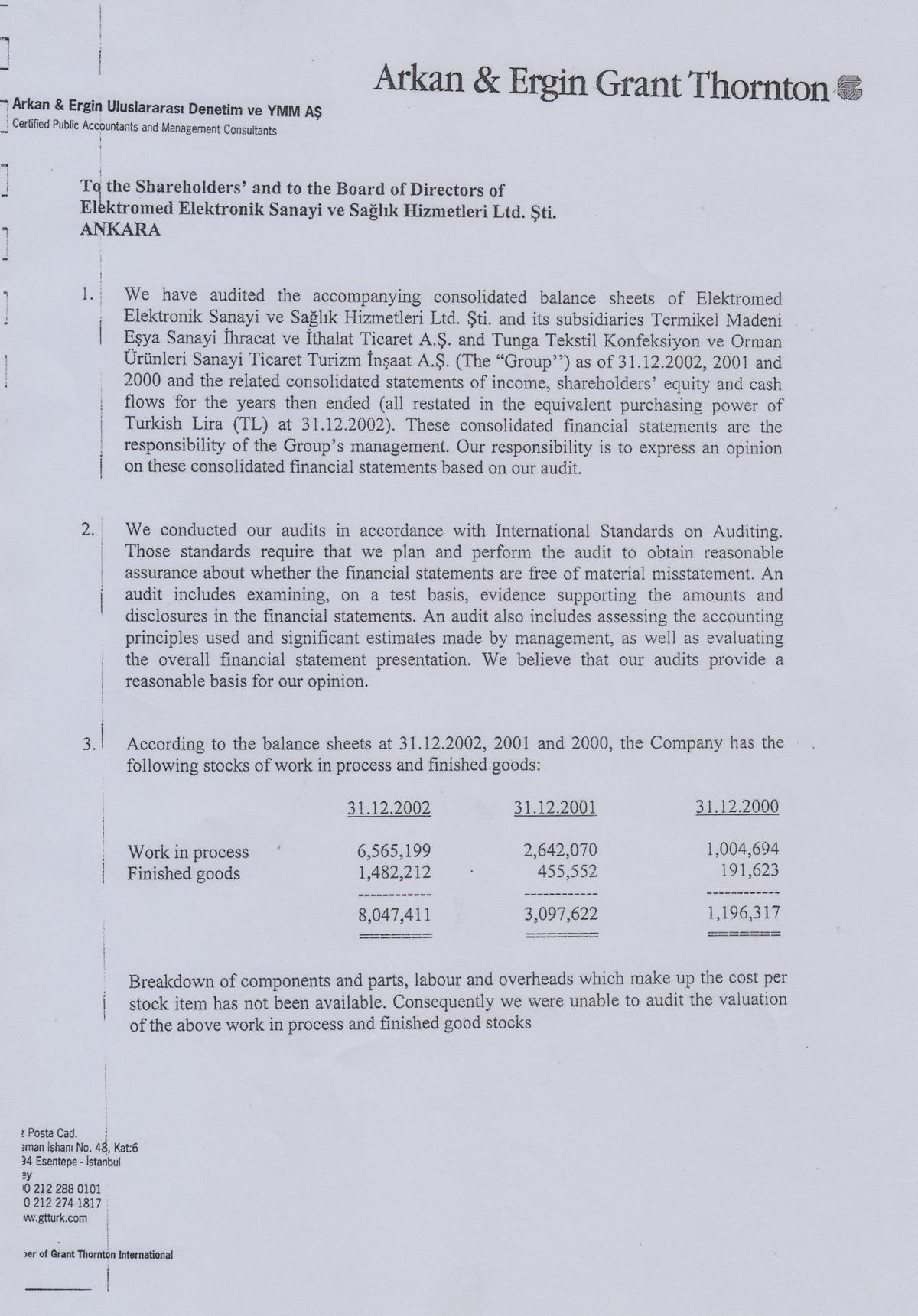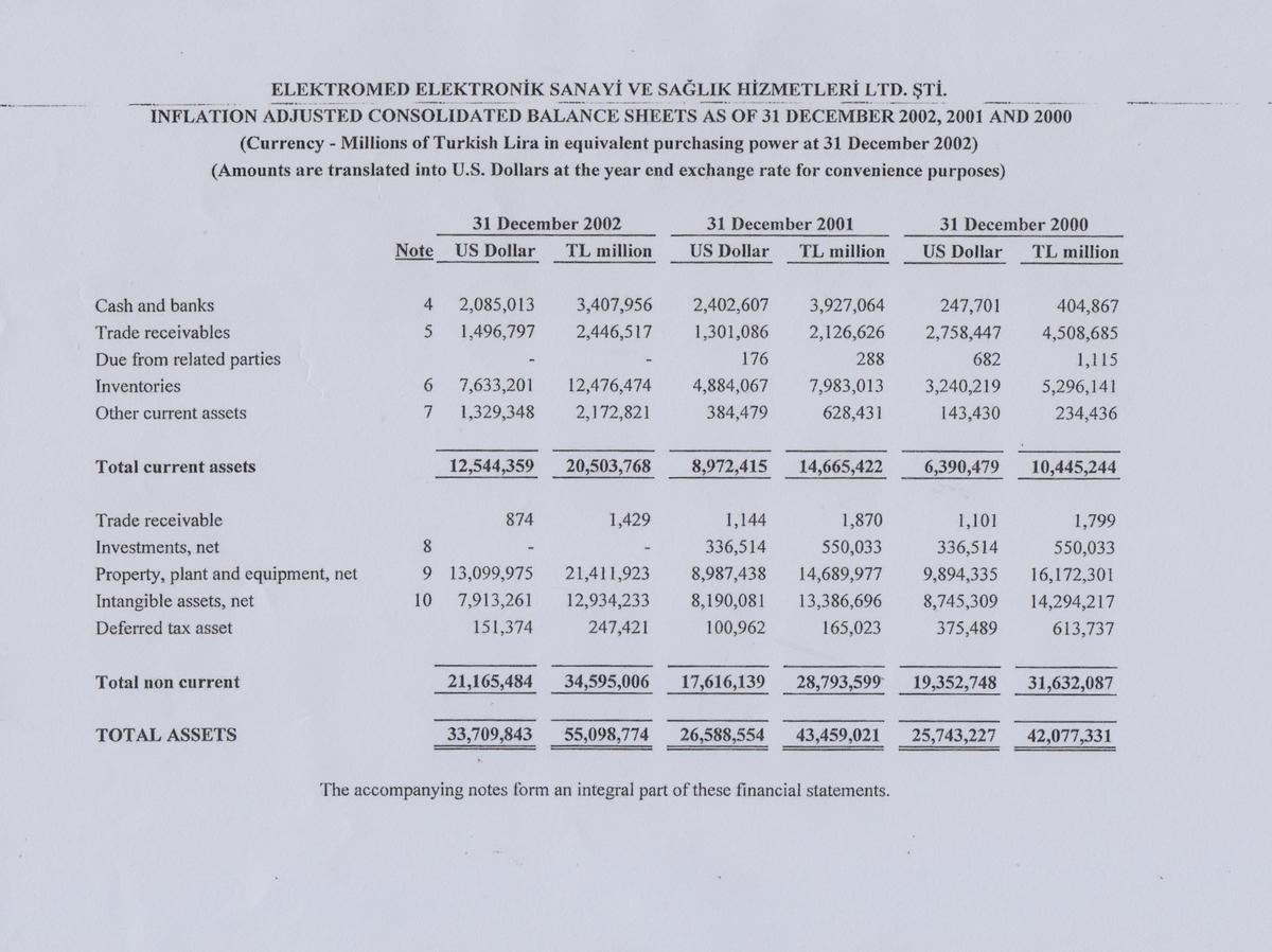 Независимая оценка и аудит, проведенные со стороны компании Arkan & Ergin Grant Thornton, показали, что по состоянию на 31 декабря 2002 года реальная стоимость всех активов предприятия составляла $33,7 миллионов.