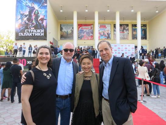 Третьим сюрпризом для меня стало предложение поучаствовать в съемках местных фильмов. Сначала я дублировал один из голосов для фильма «Салам, Нью-Йорк». Затем у меня была очень маленькая роль в фильме «Герой моей девушки». Теперь я в течение 5 секунд играю роль американского тюремного надзирателя в «Добро пожаловать в Кыргызстан». Это невероятно. Этого никогда не произошло бы со мной в Силиконовой долине. Но настоящей наградой для меня стала возможность наблюдать развитие индустрии развлечений в Кыргызстане и рост количества фильмов, снятых на местных языках.