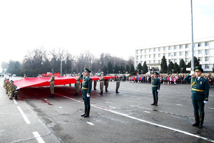 По данным мэрии города Ош, праздничные мероприятия сегодня прошли и в южной столице. В них участвовали представители местных властей, школьники и военнослужащие.