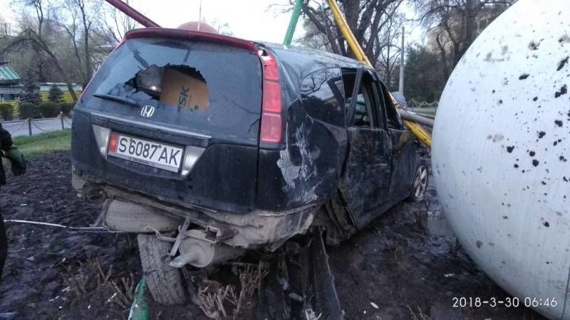 Сегодня утром лихач врезался в модель атома, повредив ее.
