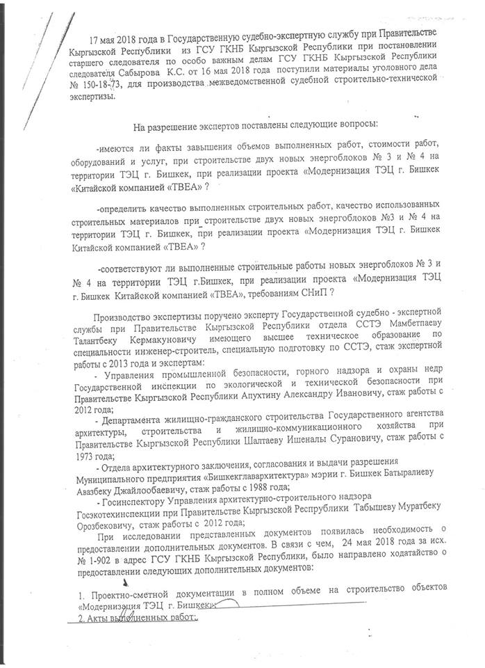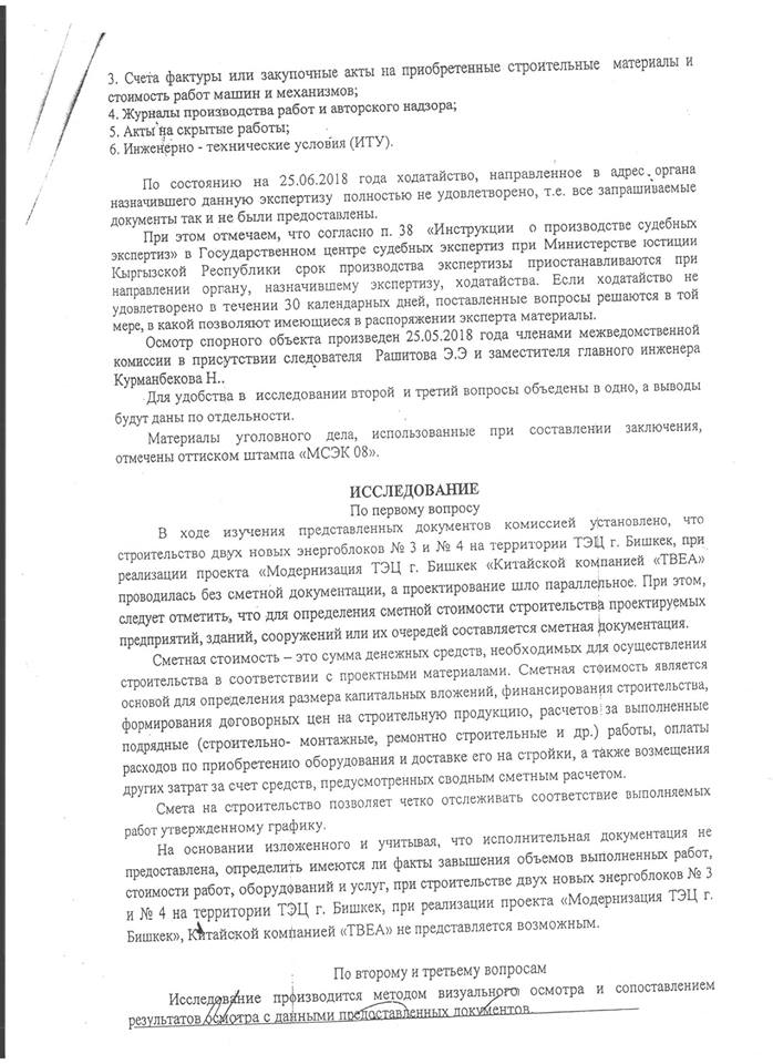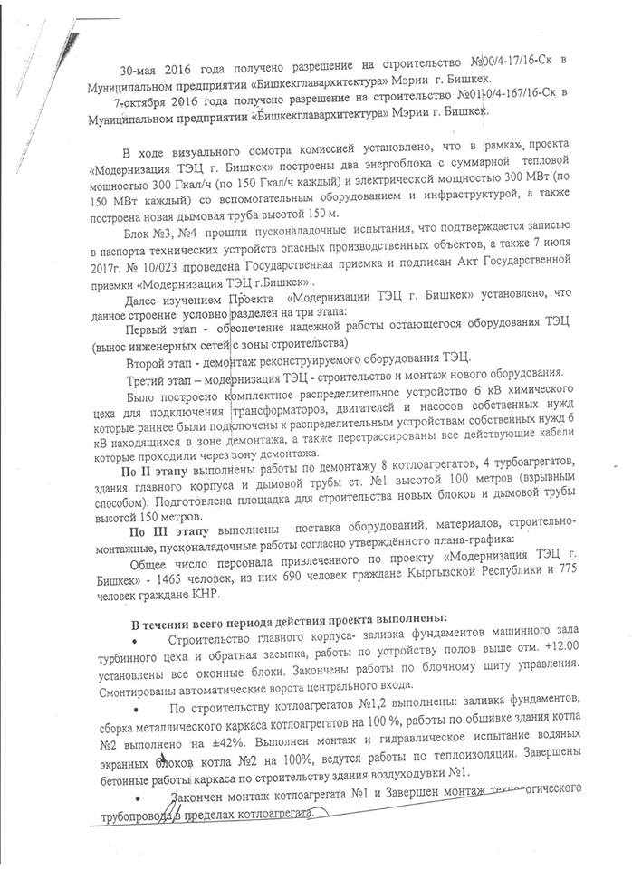 В социальной сети Facebook опубликовали результаты судебной экспертизы по модернизации ТЭЦ Бишкека.