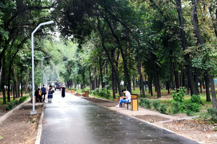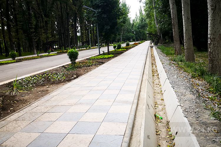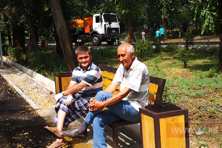 Близки к завершению и работы в парке Фучика. На скамеечках уже можно видеть отдыхающих. Некоторые держат в руках медицинские карты — рядом больница. Здесь, как говорится, осталось навести лоск: сотрудники Бишкекзеленхоза завезли землю, проводят санитарную обрезку сухих ветвей. Кое-где надо поправить брусчатку. В верхней же части парка работ намного больше. На помощь позвали местных жителей.