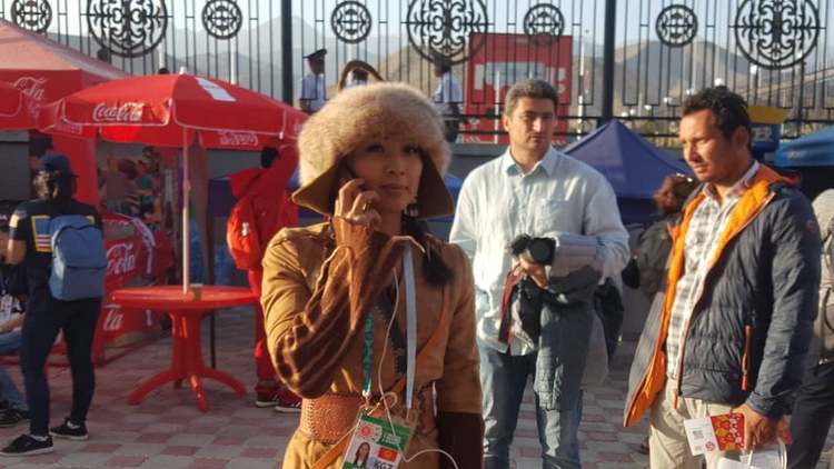 21.24. Большая делегация приехала из России. Представители разных субъектов РФ одеты в свои национальные одежды.