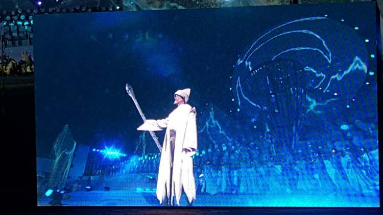 20.49. Начинается сцена «Ак Шумкар». Белый кречет Ак Шумкар олицетворяет собой символ верховной власти и величие духа баатыров.