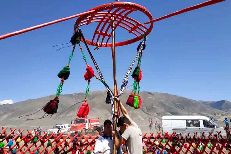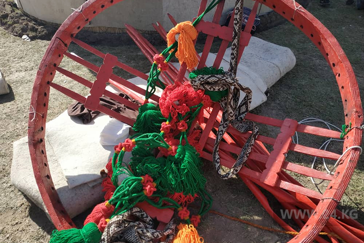 «Это самая маленькая юрта из 75 улуков (жердей купола). У всех команд они одинаковые, чтобы потом не было вопросов к победителям», — рассказал участник команды из Майлуу-Суу, председатель местного спорткомитета Мирланбек Тургунбаев.