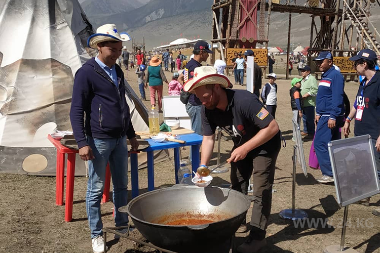Соединенные Штаты Америки представили большую культурную программу: они установили юрту для чтения, организовали разговорные клубы, проводят национальные игры, мастер-классы. Почти по центру установлено типи — переносное жилище североамериканских индейцев, рядом ковбой варит традиционное рагу, которым угощают всех желающих.