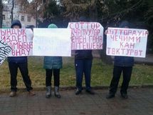 Как рассказали ИА «24-kg.com» пикетчики, они не согласны с решением Верховного суда КР, по которому их жилье в микрорайоне «Достук» должны снести. По их словам, судебное решение вынесено в пользу некоей Бактыгуль Ибраимовой, которая с 1998 года занимается перепродажей земель в этом микрорайоне.