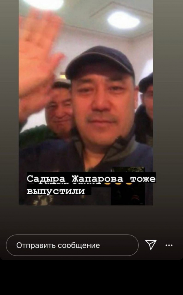 Ранее, напомним, митингующие освободили из СИЗО ГКНБ бывшего президента Алмазбека Атамбаева. Они также намерены выпустить на свободу бывшего премьера Сапара Исакова.