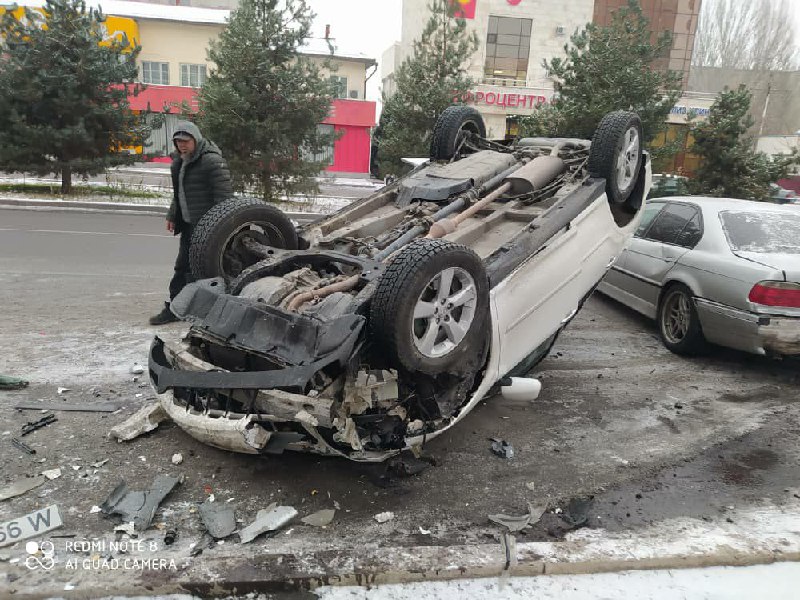 В Бишкеке в районе пересечения улиц Жукеева-Пудовкина и Токомбаева столкнулись три автомобиля. Кадры ДТП появились в социальных сетях. Судя по ним, две машины разбиты, еще одна от удара перевернулась на крышу. В пресс-службе управления патрульной милиции 24-kg.com подтвердили эту информацию.