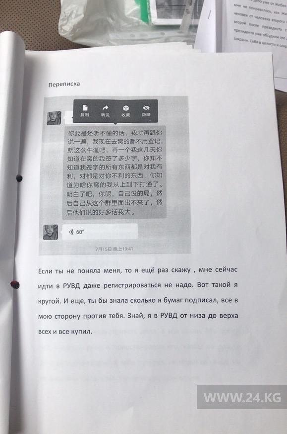 По ее словам, Гу Зун Де осужден в КНР за мошенничество и не имел права выезжать за пределы страны. Однако каким-то образом поменял паспорт и приехал в Кыргызстан.