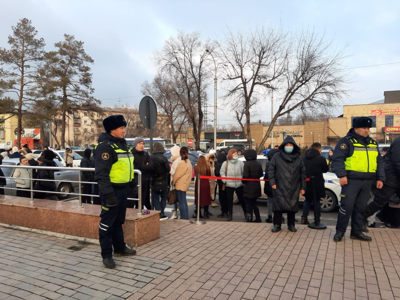 Для обеспечения безопасности и эвакуации граждан территория здания оцеплена, также прибыли сотрудники ГКНБ. Ведутся соответствующие поисковые и проверочные мероприятия.