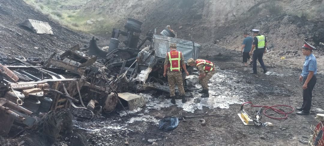 На трассе Бишкек — Ош сгорел бензовоз, водитель погиб. Об этом сообщила пресс-служба МЧС.