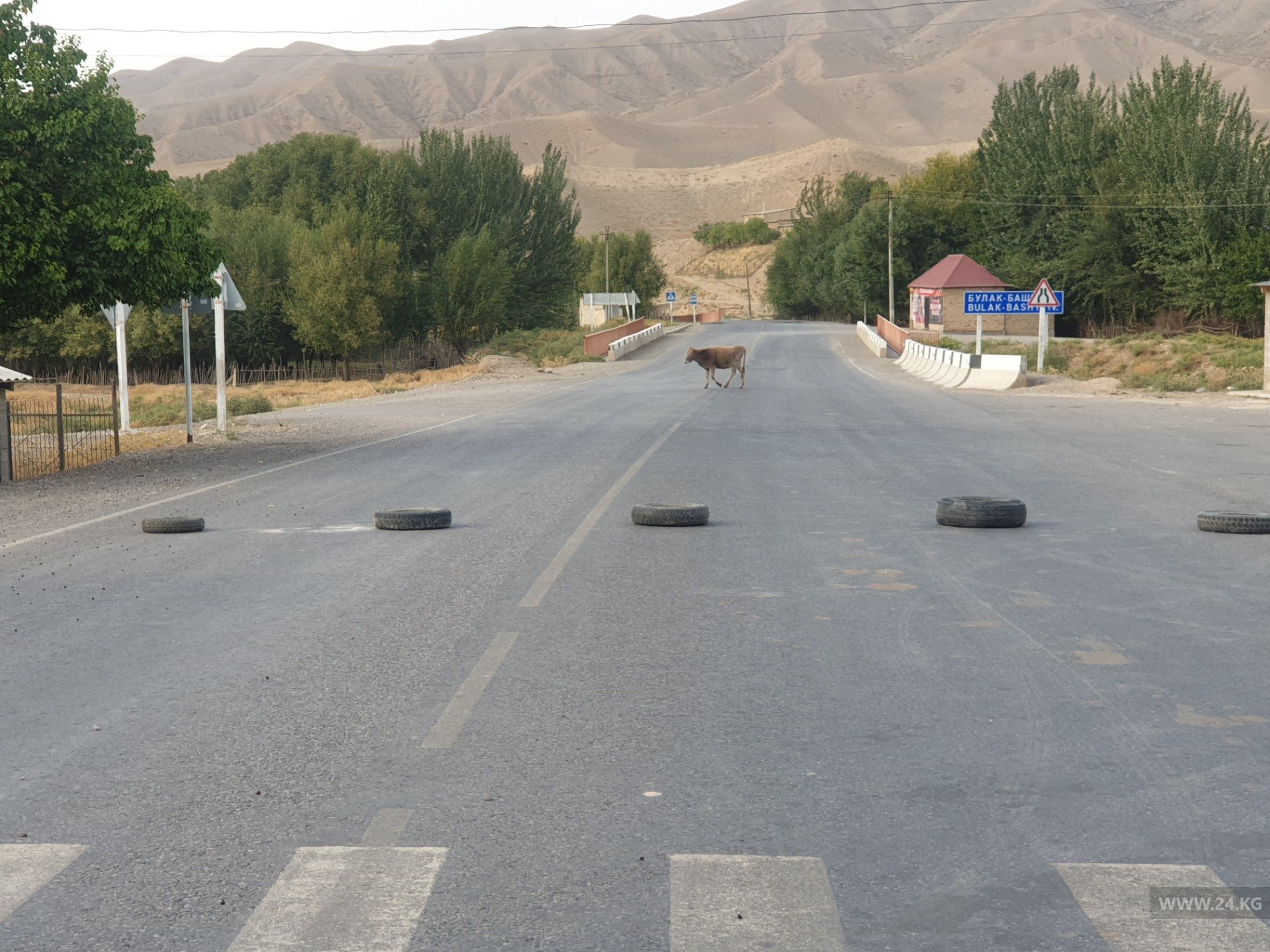 Чтобы попасть в село Кулунду — место конфликта, журналистам пришлось ехать в объезд. На дорогах установлены блокпосты. Там дежурят сотрудники милиции или местные жители. Дороги перекрыты автомобильными шинами и камнями. Объездную же трассу за 31 год независимости так и недоделали.