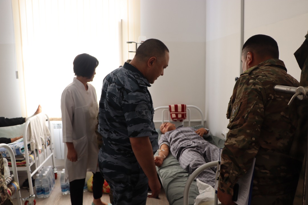 Раненых бойцов навестил заместитель министра внутренних дел Суюнбек Ниязбеков. Он расспросил их о самочувствии, выразил слова благодарности и поддержки. Замминистра встретился и с родителям военнослужащих.