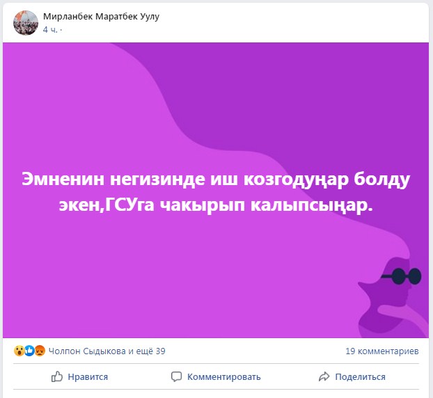 В посте блогера указывается, что он не знает, с каким уголовным делом связан допрос. Мирланбека Маратбек уулу вызвали в следственную службу МВД.