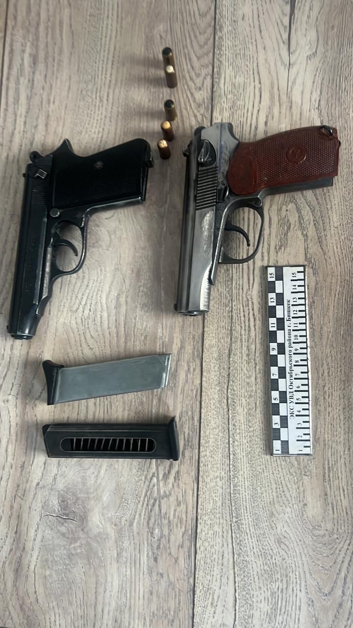 Во время обыска дома подозреваемого нашли два огнестрельных оружия неизвестной марки, два магазина и пять патронов. Назначены экспертизы.