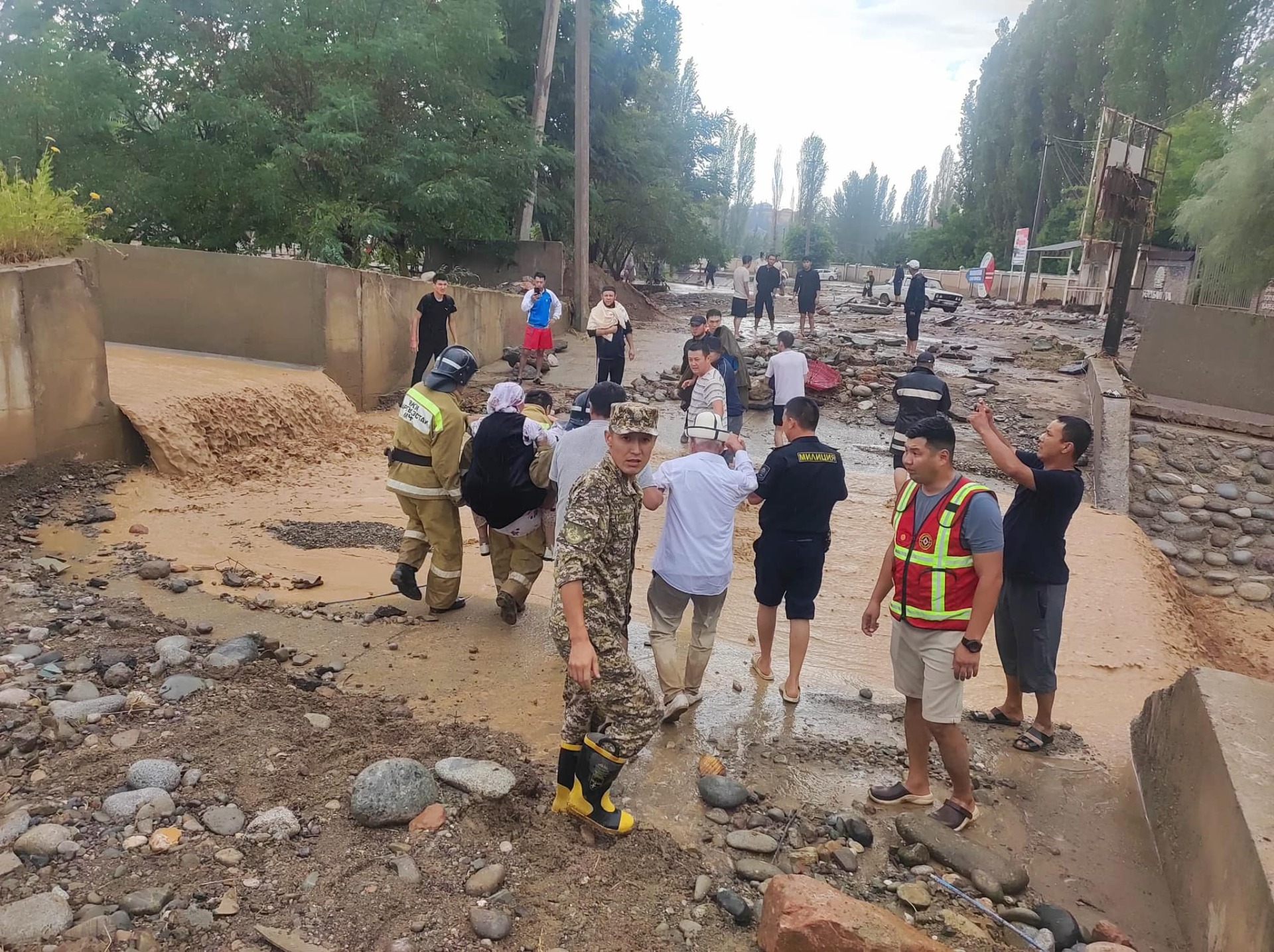 По данным ведомства, из-за обильных дождей примерно в 14.00 селевой поток сошел в селе Толойкон и центре отдыха «Борубай-Ата» в селе Озгур. На место привлечены 46 спасателей и эвакуированы 420 человек.