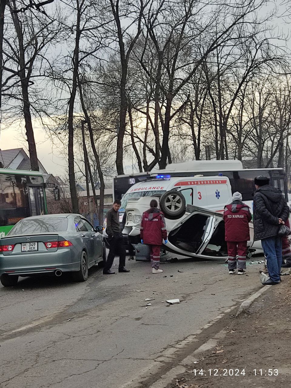 В Бишкеке перевернулась легковушка. Фотографией с места происшествия в соцсетях поделились очевидцы.