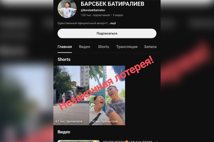 В ходе проверки установлено, что автор YouTube-канала Барсбек Батыралиев организовал лотерею без разрешения уполномоченного органа. Он собирал деньги с граждан под видом призового розыгрыша.