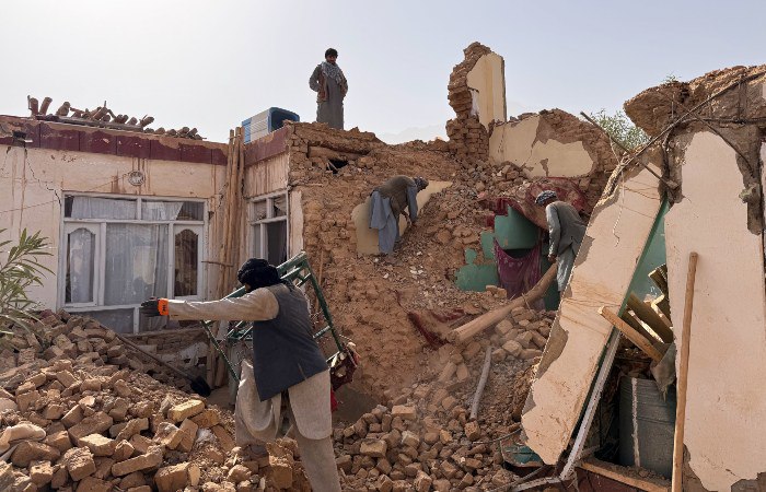 Под завалами на уровне первого этажа находится рабочий, которого пытаются вытащить спасатели.