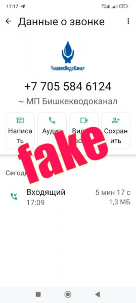 «МП «Бишкекводоканал» никогда не запрашивает по телефону данные банковских карт, пароли, коды подтверждения и другую конфиденциальную информацию. При получении любого подозрительного звонка рекомендуем немедленно завершить разговор и связаться с официальными справочными службами предприятия», — говорится в сообщении.