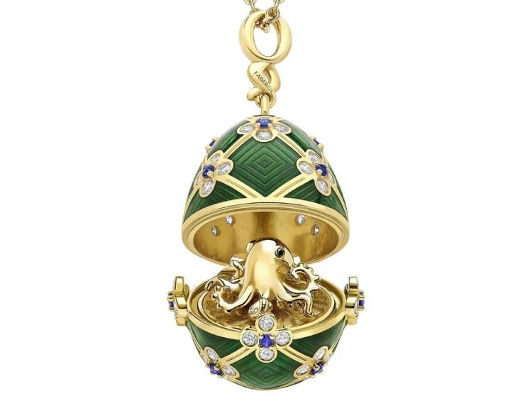 Кулон из фильма о Джеймсе Бонде «Осьминожка» сделан из 18-каратного золота и покрыт зеленой эмалью гильоше. Внутри подвески находится миниатюрный золотой осьминог с двумя глазами из черных бриллиантов. Кулон украшен 60 белыми бриллиантами и 15 синими сапфирами. Украшение стоимостью $19,2 тысячи пока «не найдено».