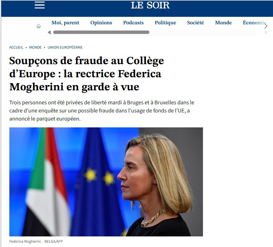 По данным газеты Le Soir, по делу о коррупции и нецелевом использовании бюджетных средств арестованы три человека. В их числе бывший верховный представитель Евросоюза по иностранным делам и безопасности Федерика Могерини, занимающая должность директора Колледжа Европы.
