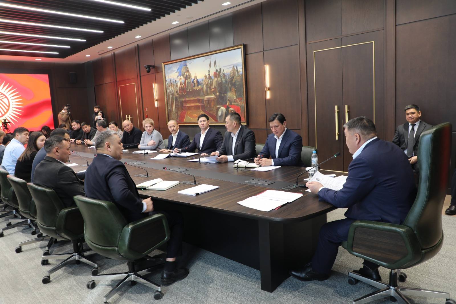 Председатель ГКНБ Камчыбек Ташиев встретился с гражданами, признанными потерпевшими по уголовному делу в отношении кыргызстанца С.М. Встреча состоялась в штаб-квартире госкомитета, в ней также участвовал задержанный.
