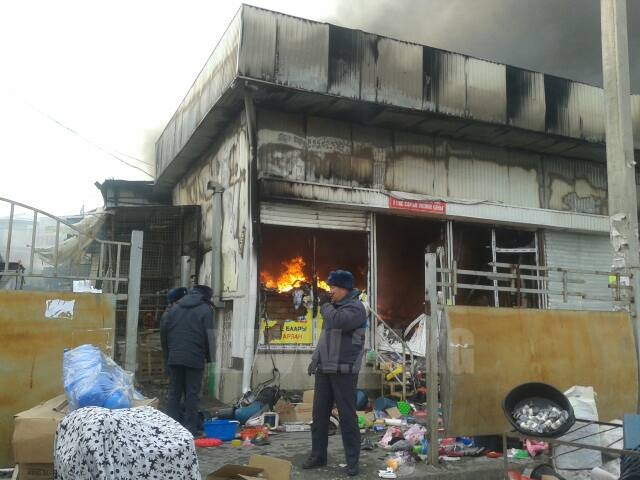 Напомним, горит вещевой мини-рынок на пересечении улиц Киевской и Бейшеналиевой. На месте ЧП находятся 5 пожарных расчетов. Вызов поступил в 9.48.