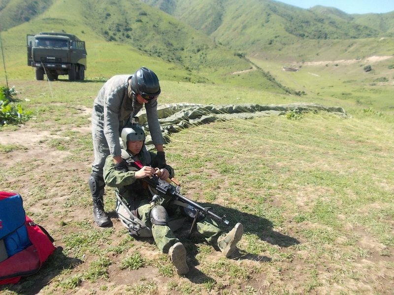 - Кыргызстан на 97 процентов состоит из гор. Подниматься на них тяжело, а спускаться тяжелее вдвойне. Параплан – наиболее актуальное средство для спуска, - сказал начальник парашютно-десантной службы одной из войсковых частей, руководитель занятий Николай Михайлов. - Параплан позволяет проводить длительные полеты по маршрутам. Имея видеокамеры и оборудование, мы можем вести наблюдение за местностью и в режиме онлайн передавать данные в штаб. Рота солдат может проверить за неделю не более трех ущелий. Группа парапланеристов из семи человек за то же время может проверить весь хребет и все ущелья, к нему прилегающие.