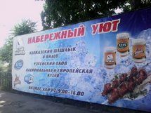 Кроме того, часто рекламируют алкогольные напитки, что также является нарушением закона. Но предприниматели не берут это в расчет и все равно действуют по-своему. На пересечении проспекта Чуй и улицы Набережной на заборе кафе размещен плакат, где помимо названия есть данные о спиртной продукции. «Здесь несколько нарушений о госязыке, также нельзя размещать рекламу на заборе», - отметили в госагентстве.