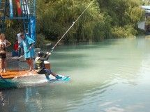 Уже не первый год спортсмены, занимающиеся экстремальными видами, и рядовые любители острых ощущений, собираются на Аэропортинском озере. Там установлено специальное оборудование – канатно-буксировочный механизм (он заменяет катер). На воде несколько трамплинов и других приспособлений для трюков. Включается агрегат, тянущий трос. Спортсмен хватается и устремляется по волнам.