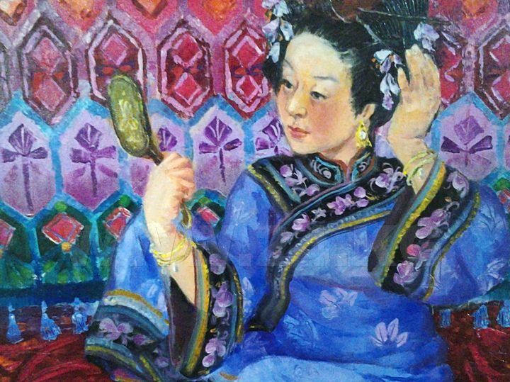 На мой вопрос, где она черпает вдохновение для своего творчества, Халида Шимова ответила, что оно рождается от созерцания прекрасной природы родных мест и древних свитков, от волшебства музыки и плавных движений в танце - от любой красоты и гармонии, к которым она стремится всю жизнь. «При этом все картины появляются на свет по-разному – одни быстро, в одночасье, другие - вынашиваются и изливаются на полотно в течение многих дней и месяцев. Сначала они должны созреть вот здесь», - говорит художница, указывая на голову и сердце.