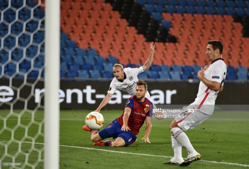 Точный удар Фабиана Фрая на 88-й минуте принес «Базелю» победу над «Айнтрахтом». Первый матч «Базель» тоже выиграл (3:0). Он уверенно идет дальше.