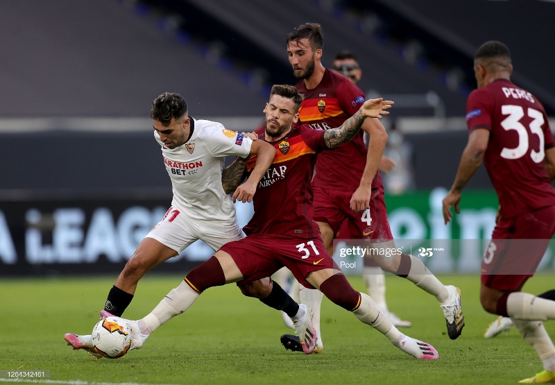 Противостояние «Севильи» и «Ромы» состояло из одного матча на нейтральном поле — до пятимесячной паузы в турнире они друг с другом сыграть не успели. «Севилья» взяла верх — 2:0. Отличились Серхио Регилон (21-я минута) и Юссеф Эн-Несири (44-я минута).