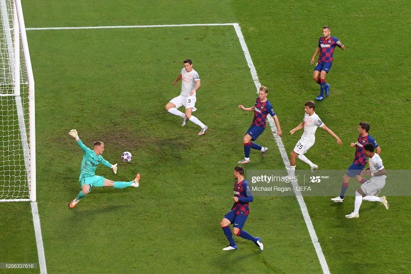 У «Баварии» отличились Томас Мюллер (4-я и 31-я минута), Иван Перишич (21-я минута), Серж Гнабри (27-я минута), Йозуа Киммих (63-я минута), Роберт Левандовский (82-я минута) и Филиппе Коутиньо (85-я и 89-я минута). У «Барселоны» забил Луис Суарес (57-я минута). Кроме того, игрок немецкой команды Давид Алаба на 7-й минуте отправил мяч в свои ворота.