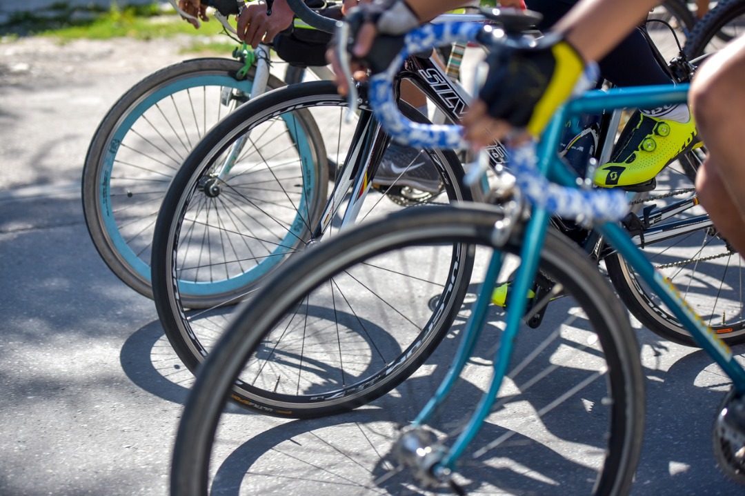 Для безопасности горожан внутри велоколонны соблюдали дистанцию в полтора метра.