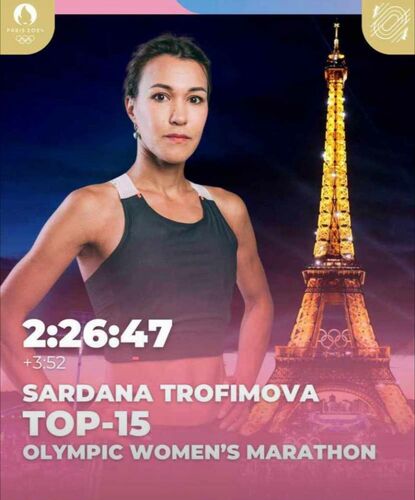Сардана Трофимова пробежала марафон на Олимпиаде в Париже. Она заняла 14-е место с результатом 2:26:47, установив новый национальный рекорд Кыргызстана.