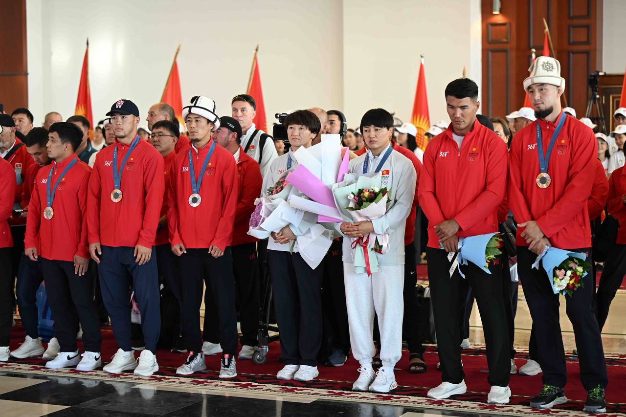 Для спортсменов организовали концертную программу. Далее кортеж с участниками и призерами Олимпийских игр направился к Дому правительства, где с участием главы государства Садыра Жапарова пройдет торжественная церемония награждения медалистов.