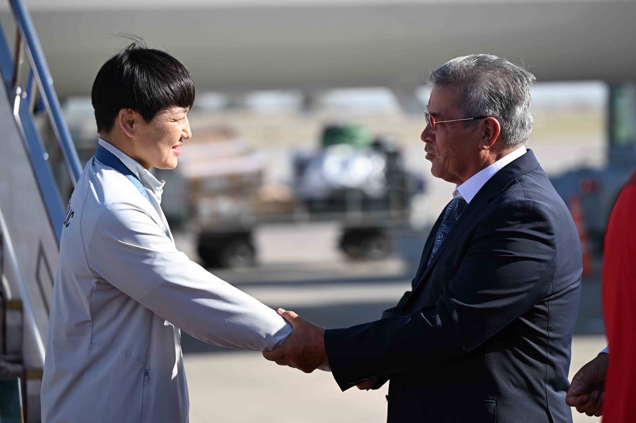 В аэропорту «Манас» их встретили заместитель председателя кабмина Эдиль Байсалов, министр культуры, информации, спорта и молодежной политики Алтынбек Максутов, государственный секретарь Суйунбек Касмамбетов, фанаты и близкие атлетов.