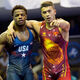 Акжол Махмудов завоевал бронзовую медаль, выступая в весовой категории до 77 килограммов. В схватке за третье место он встретился с азербайджанцем Сананом Сулеймановым, двукратным вице-чемпионом мира. В упорной борьбе Акжол одержал победу с минимальным счетом 6:5.