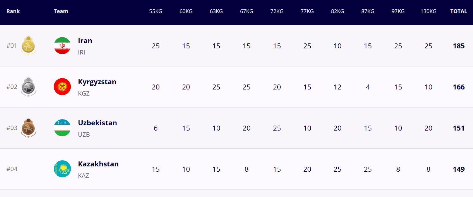 На первом месте оказались иранцы, на третьем — спортсмены из Узбекистана.