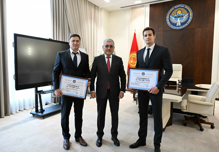 Денису Петрашову вручили сертификат на 500 тысяч сомов. Глава кабмина добавил, что государство продолжит поддерживать спортсменов, в том числе за счет строительства школ с бассейнами, а Иссык-Куль планируется развивать как центр спортивного туризма и водных видов спорта.
