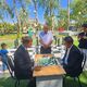 Шахматный праздник состоялся и в Джалал-Абаде. Здесь организовали партию между юными шахматистами Айбийке Коконбаевой (2012 года рождения) и Элмирбеком Ашимовым (2015 года рождения) и дуэтом Сергей Карякин и Николай Валуев.