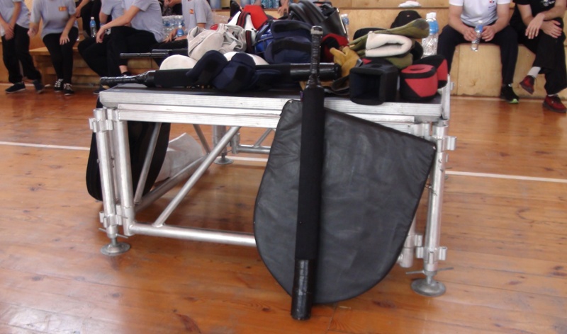 В СМБ своя экипировка: шлемы, жилеты, накладки... Мечи сильно напоминают дубинки. Сделаны они из полимеров, и подразумевается, что больно ими стукнуть нельзя. Может, и так, но звучат удары довольно гулко. Благо есть щиты — мягкие, легкие и надежные.