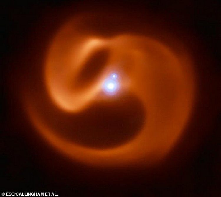 Две звезды, окруженные космической пылью, вращаются с такой скоростью, что получилась «космическая змея». При этом одна из звезд готова превратиться в сверхновую, сообщило издание Daily Mail.